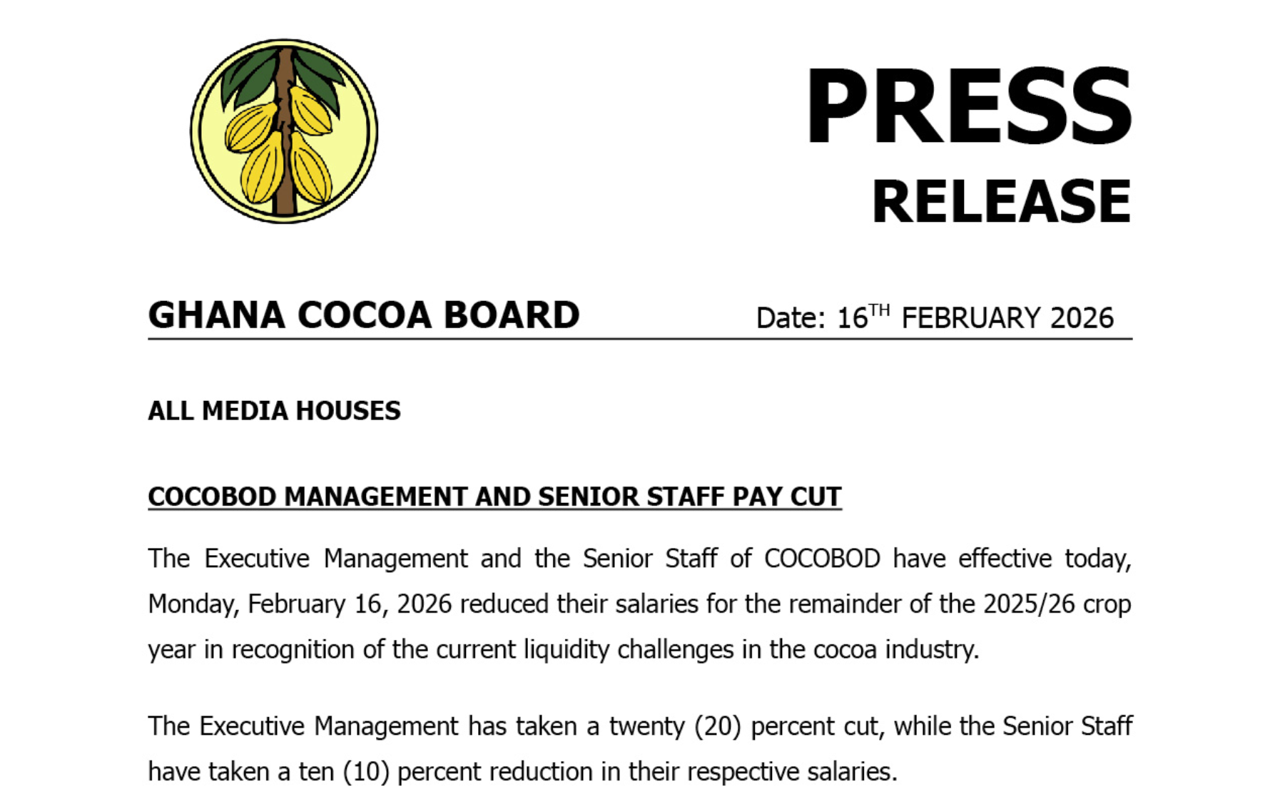 COCOBOD MANAGEMENT AND SENIOR STAFF PAY CUT